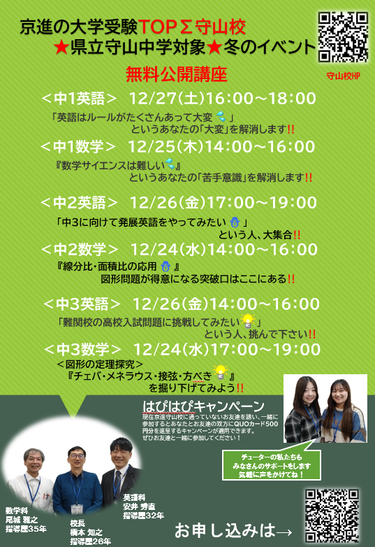 【守山校】《県立守山中生対象》 =無料=冬休み公開講座