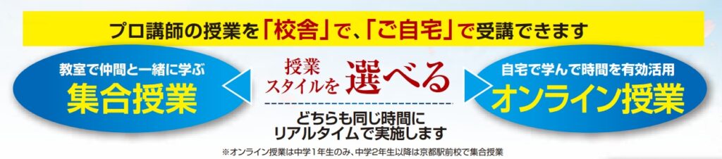 京進の大学受験TOPΣ京都駅前校では中1生の授業でリアルタイムのオンライン授業を実施いたします。