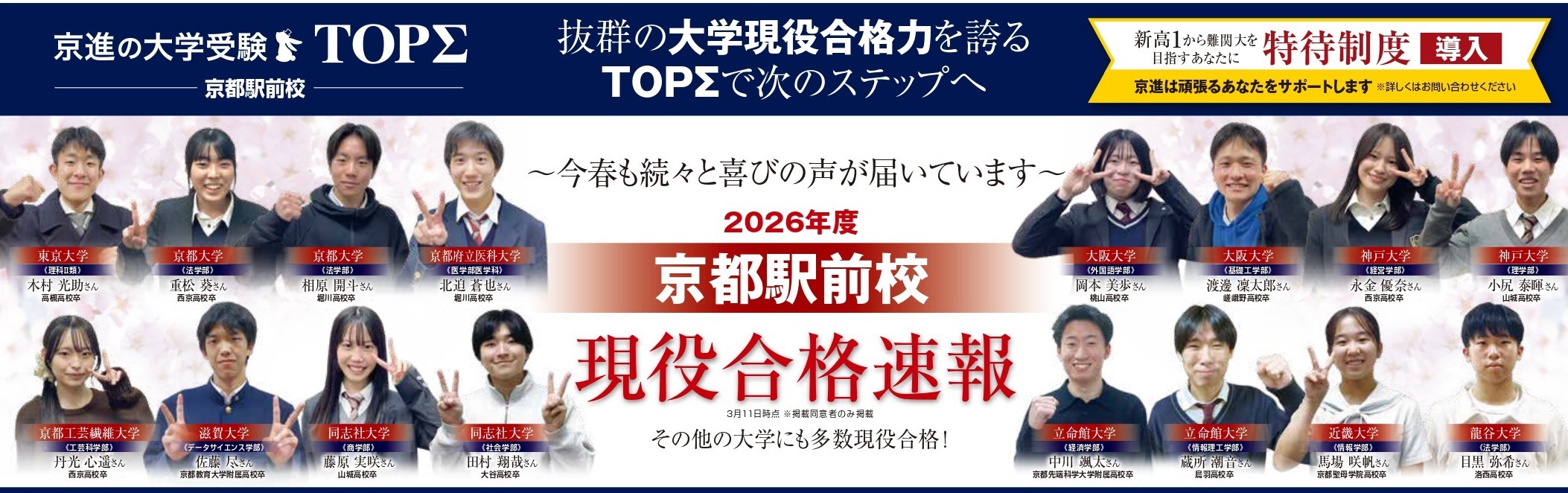 京進の大学受験TOPΣ京都駅前校では2026年度新高1生(現中3生)を対象に