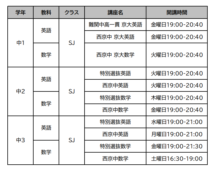 詳しい曜日や時間につきましては、校舎までお問い合わせください。
