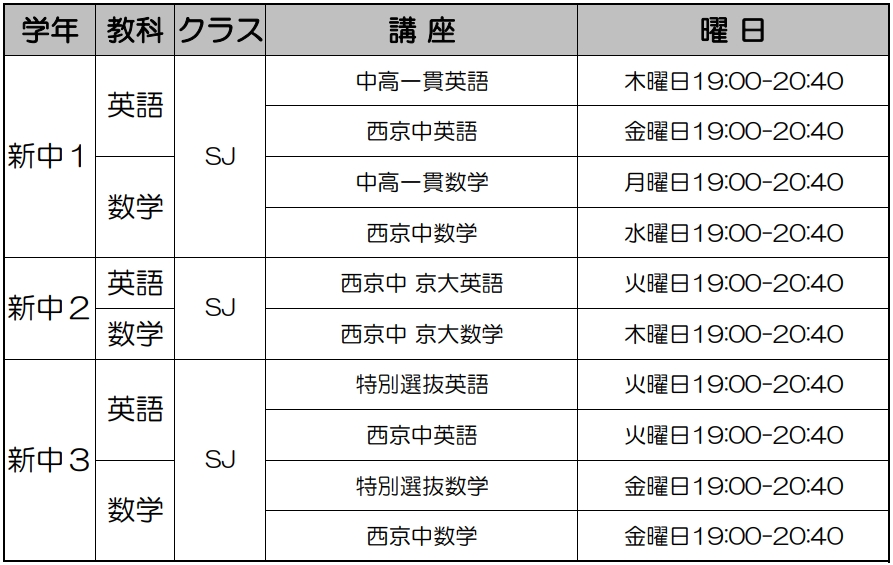 【新中学生コース(現小6生、現中1生、現中2生)】のご案内