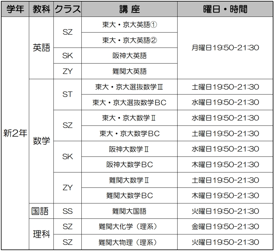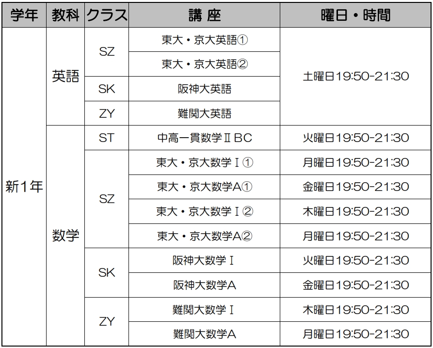 【新高2生(現高1生)クラス】のご案内