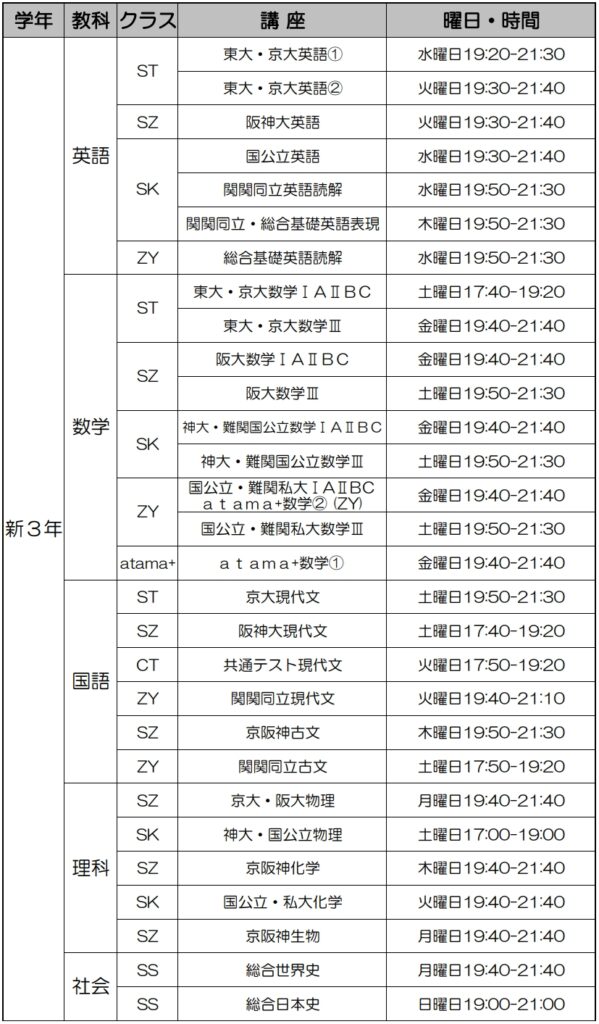 【新高3生(現高2生)クラス】のご案内